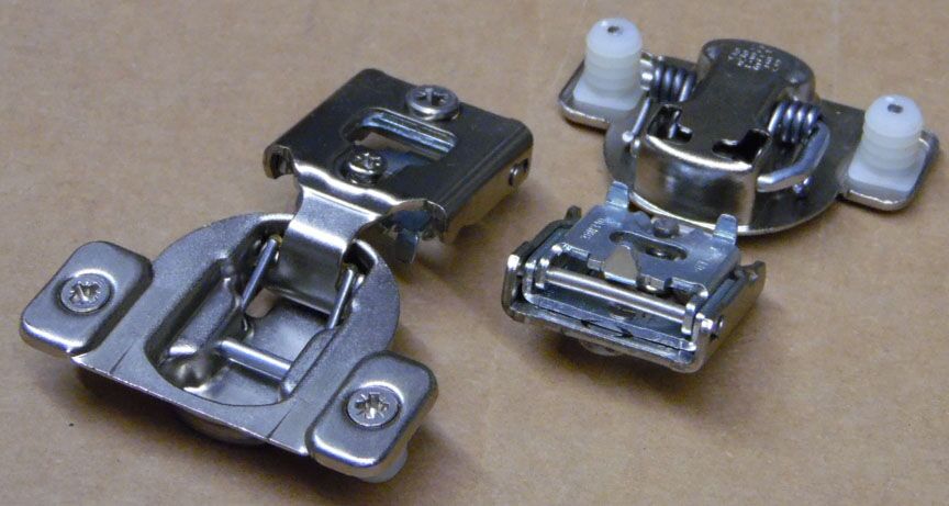 The Blum Compact 38N is the simple one-piece face-frame hinge preserved from the legacy hinge page, shown in screw-on and press-in forms for the common 1/2 inch overlay application.